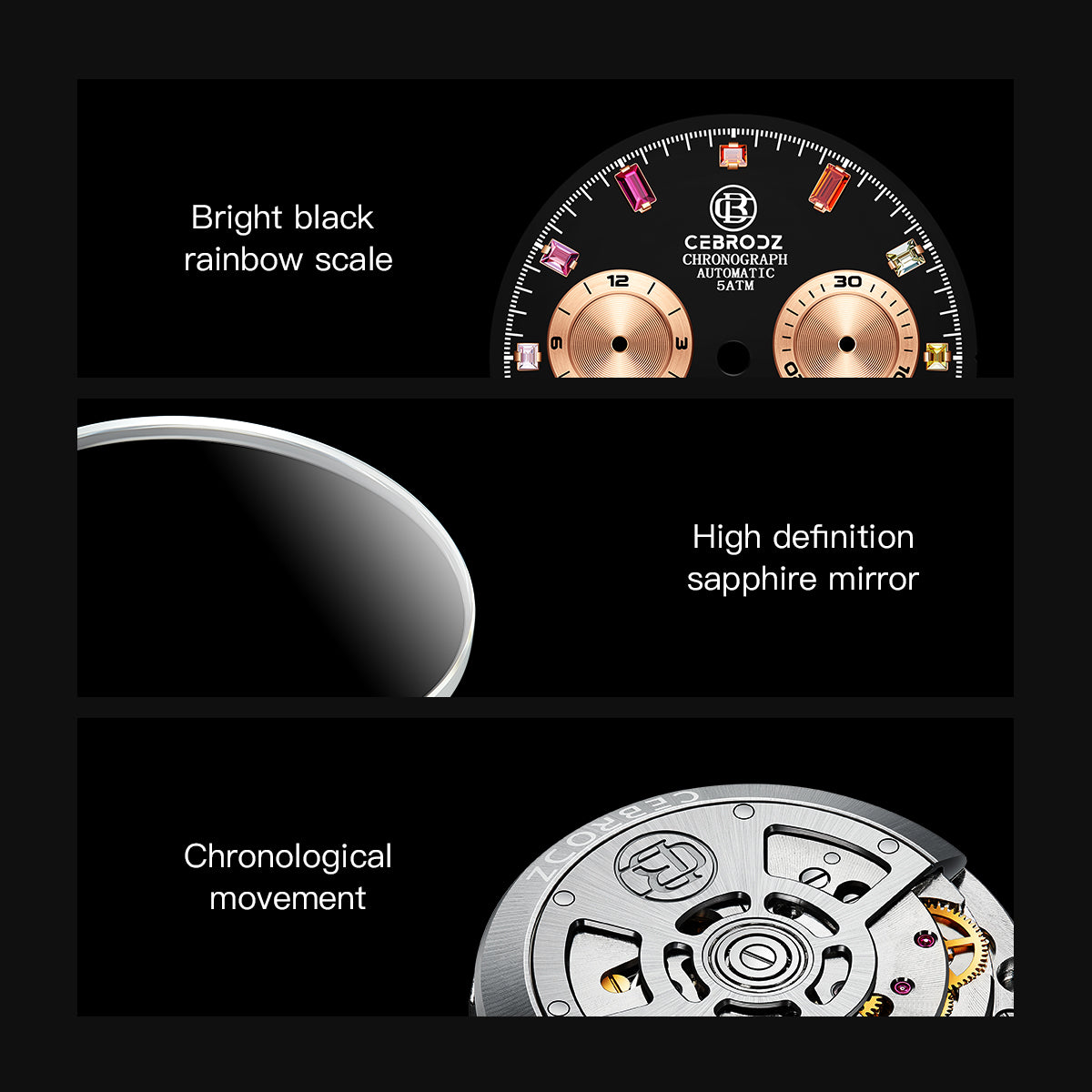 CEBRODZ Men's Chronograph DIY bezel 904L stainless steel Mechanical Automatic machinery 50m waterproof